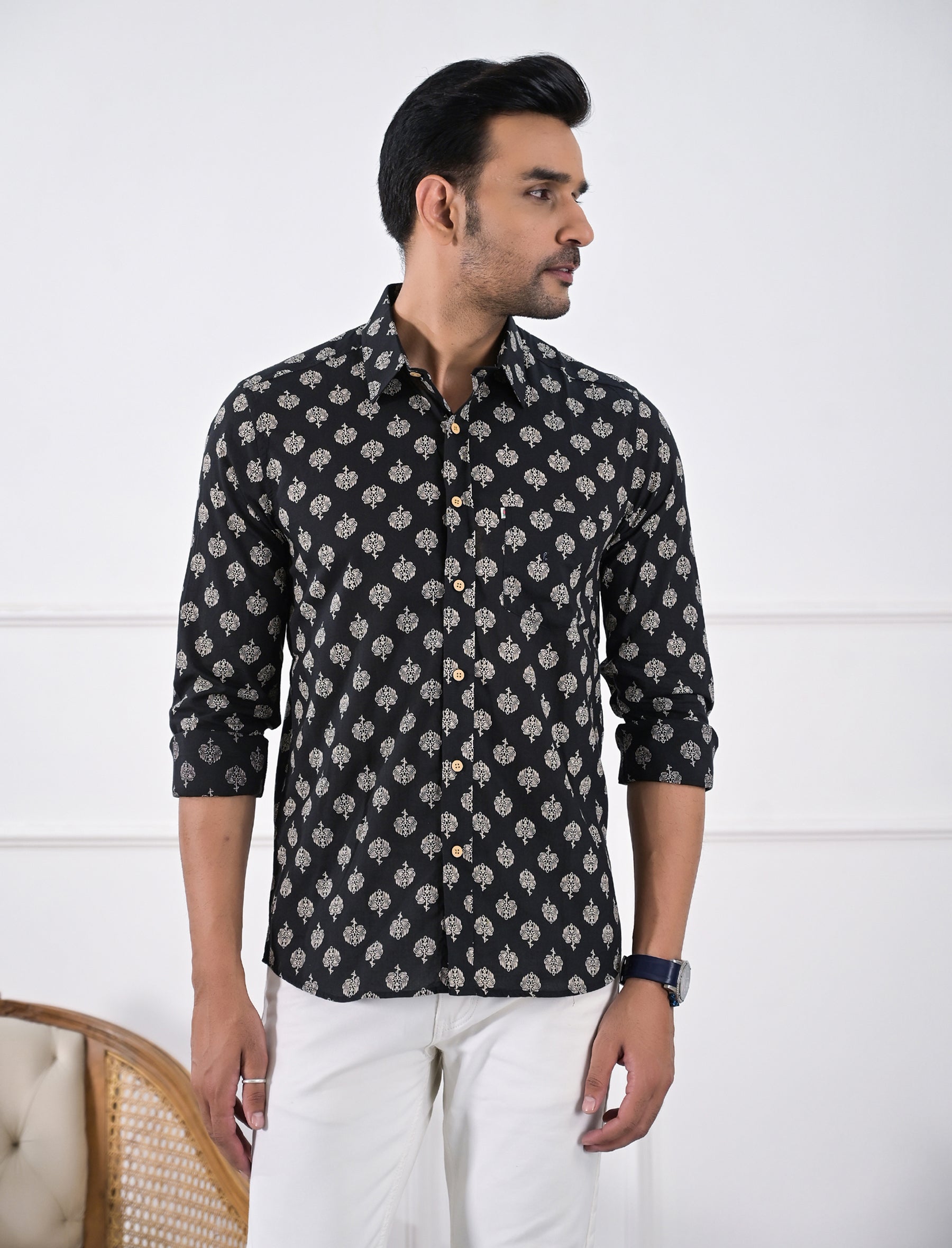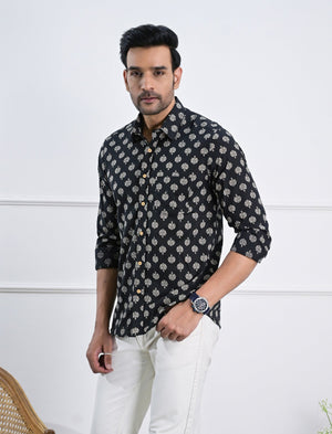 This hand block printed cotton shirt is presented to you by Gulabchand Prints, A well-known brand in hand block prints from over 9 decades. This exclusively hand stitched shirt is made of 100% pure cotton fabric with having hand block printed prints over it. Wear this at your ease and the fabric is so smooth to skin that you will love it and the attractive prints adds more charm to the same.