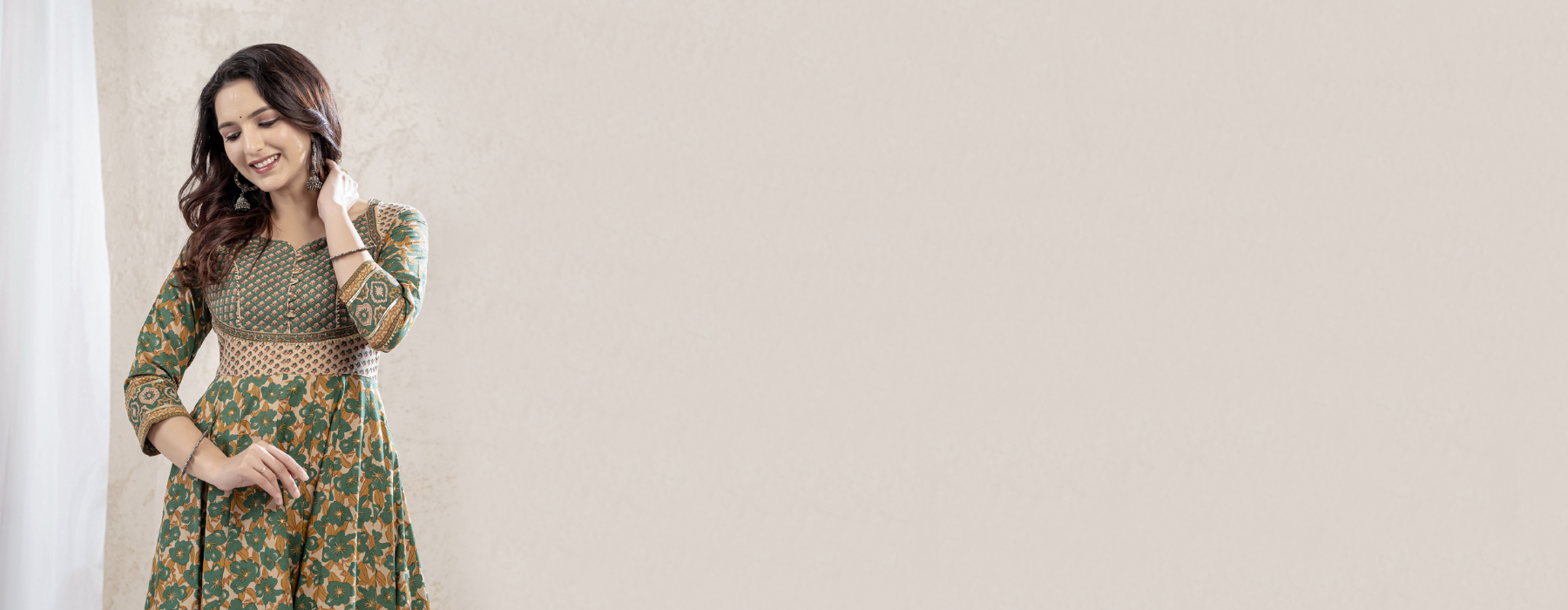 Blue Cotton Printed Anarkali Kurta Pant Set