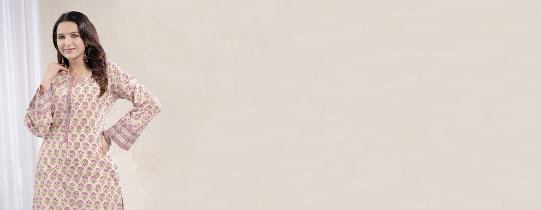 Baby Pink Block Printed Cotton Kurta Pant Set